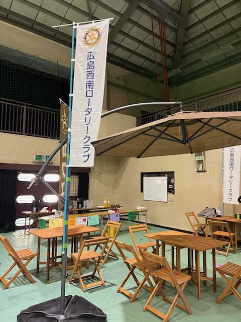 2025年11月29日(土曜日)に地区補助金事業として、広島県立廿日市特別支援学校阿宇品分校にイベント用のパラソル、テーブル、看板、のぼり等を寄贈し同施設で開催される「文化祭」に使用してもらいました。当クラブ会員、約25名も参加し生徒と一緒に「おもてなしカフェ」の運営支援を行いました。沢山の父兄の方にお越し頂き大盛況でした。